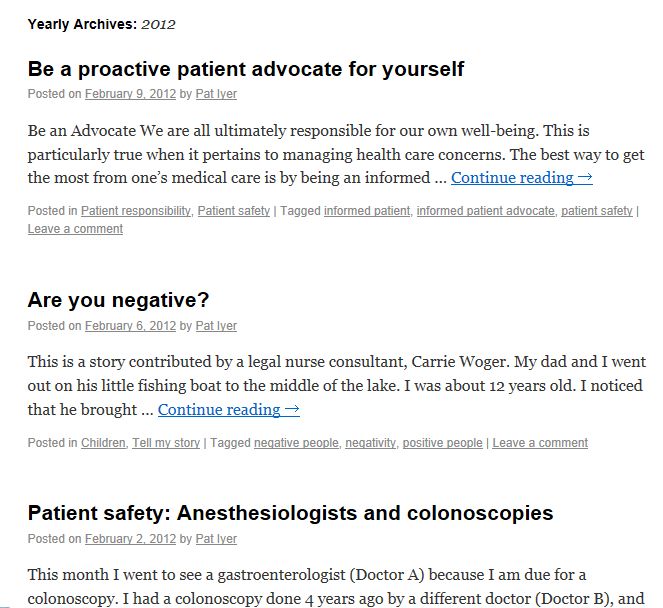 Just found this site that is written by nurses who consult for legal cases. It is interesting for patients as well as professionals.